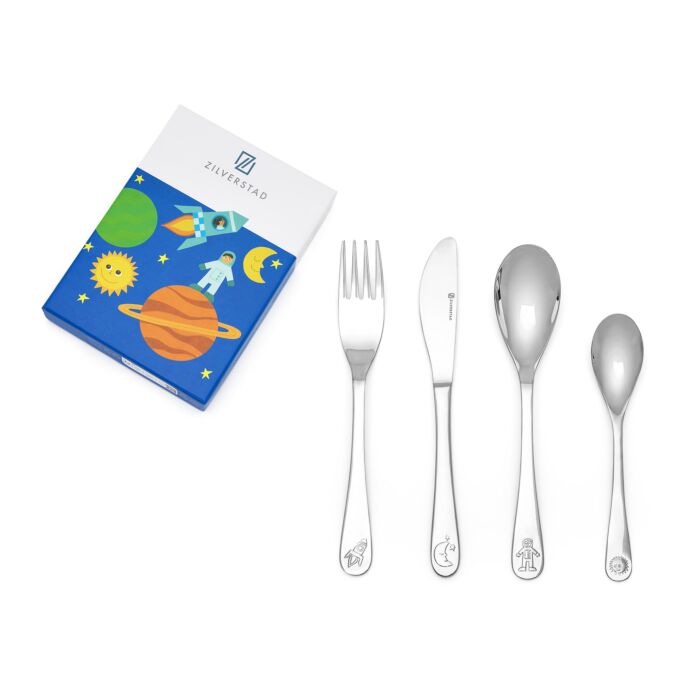 Qui n'a pas caressé le rêve de devenir astronaute ? Ces couverts pour enfants nous en rapprochent un peu plus. Ils représentent un astronaute, une fusée, le soleil et la lune. Les couverts Astronaut sont fabriqués en acier inoxydable 18/10 et peuvent être nettoyés au lave-vaisselle. Ils sont présentés dans un luxueux coffret cadeau coloré.
